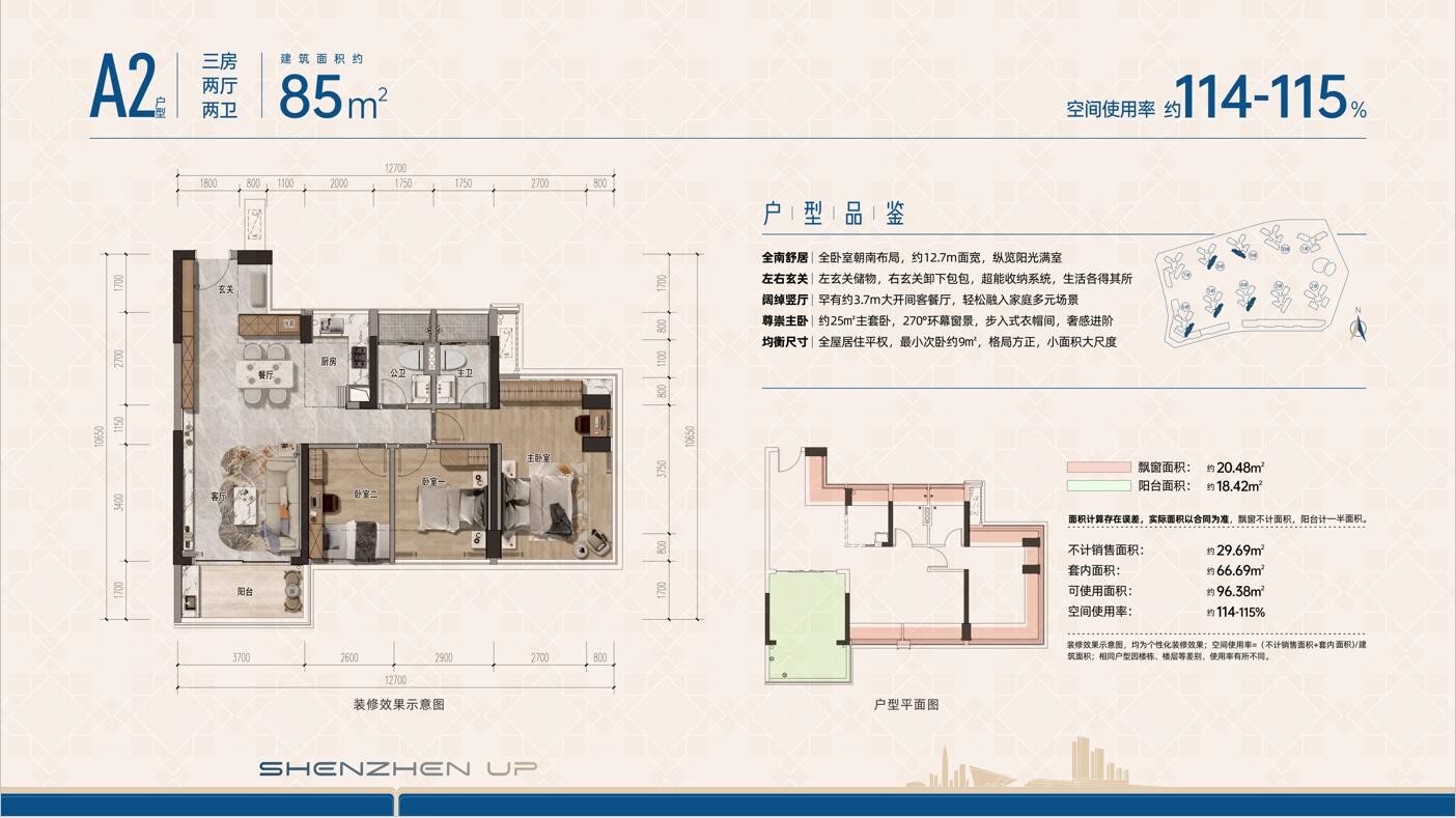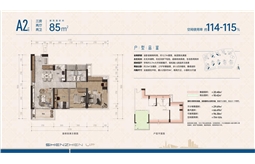 A2戶型,85平方米三房兩廳兩衛