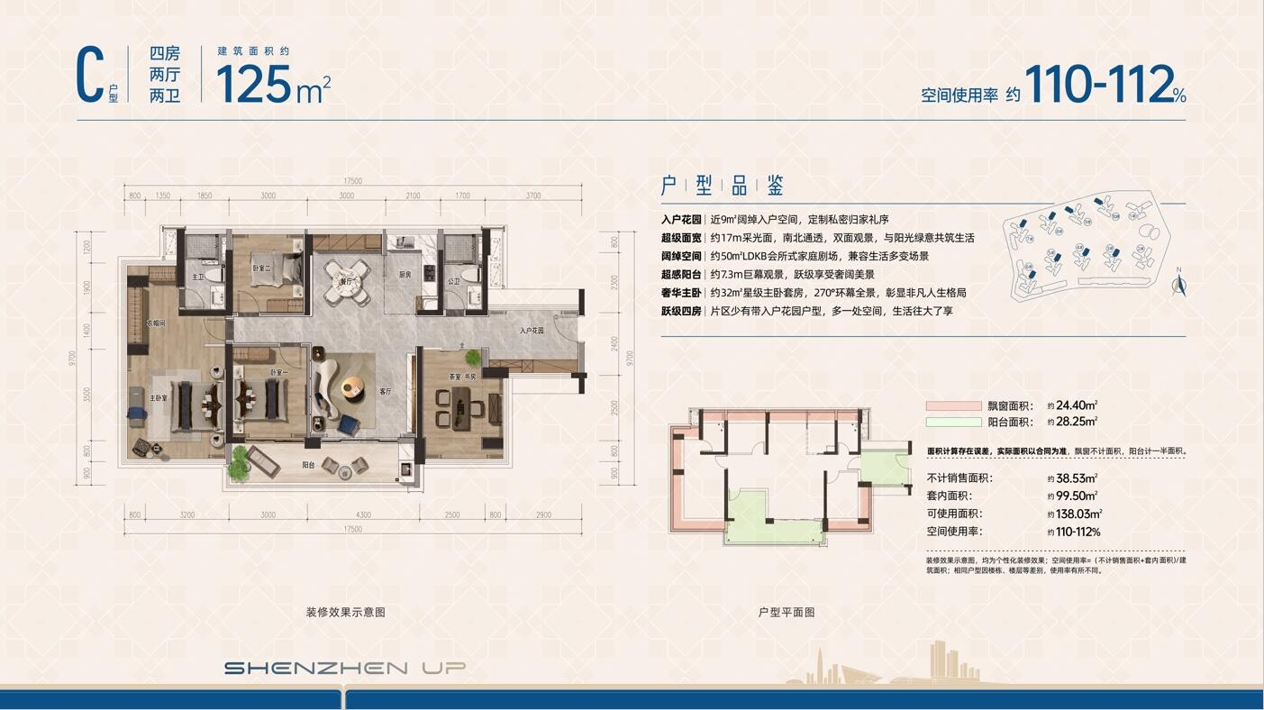 C戶型,125平方米四房兩廳兩衛